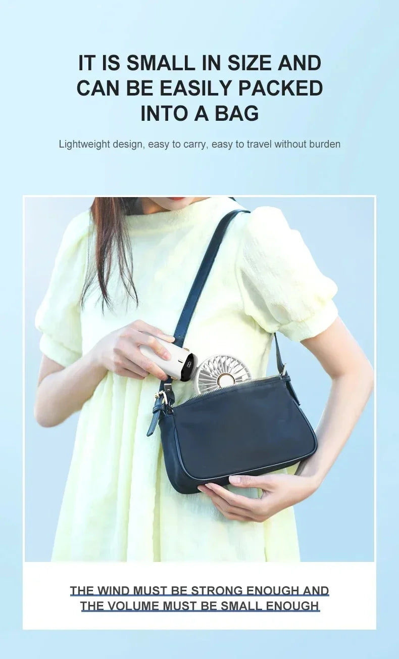 Handheld Neck Hanging USB Mini Fan Foldable Portable 5 Speed Rechargeable Fan With Phone Stand And LED Display Screen