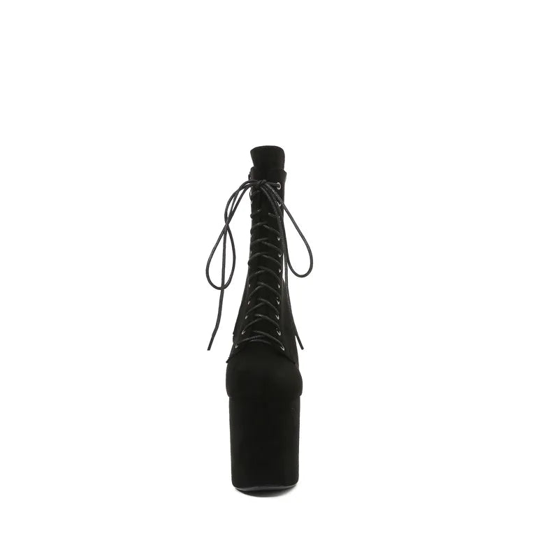 Pole Dance Shoes 15 17 20cm Sexy Black Flannel Platform Stripper Heels Suede Ankle Boots High Heels Laces Round Toe Low Leg