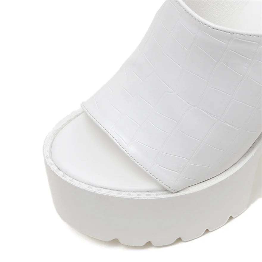 Super High Heels 14CM Platform Sandals Women 2025 Summer Crocodile Pattern Leather Peep Toe Sexy Platform Party Female Slippers